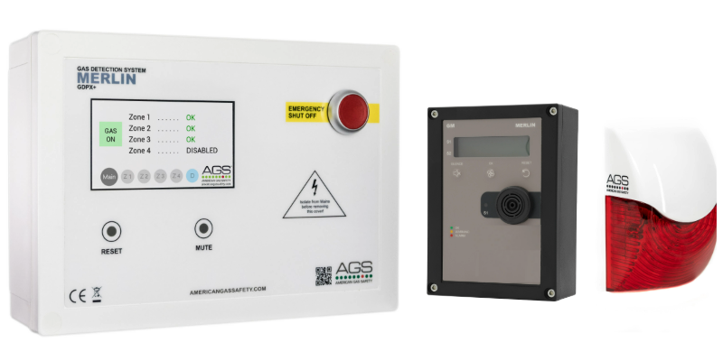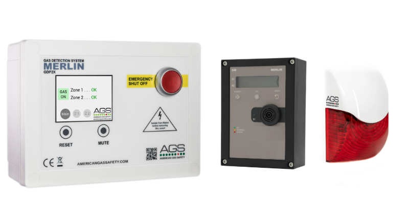 The Merlin GDP2X is an advanced boiler room gas detector featuring an eight-zone gas detection system. It controls up to 8 remote sensors and includes a status display. The system can communicate conditions to a Building Management System (BMS) through an SPDT relay. For emergency situations, it supports gas shutdown by adding external solenoid valves or relays, providing an effective solution for boiler room gas shut off.