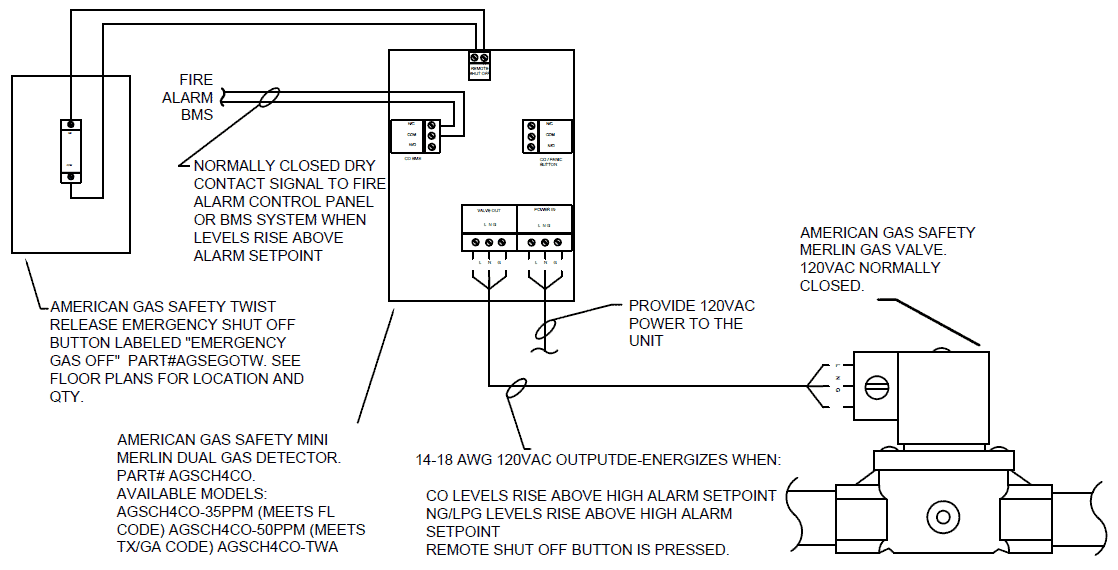 Meet CSD-1 and protect the mechanical room with gas detection. For rooms smaller than a 25 yard radius, add a Mini Merlin to the emergency panic button circuit to provide combustible gas & carbon monoxide monitoring.